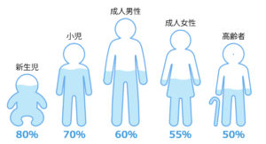 成人の場合、約60%。子供は70%、高齢者は50%なんです!