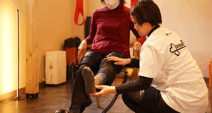 OHANAFITではレッドコード(天井から下げられた赤いロープを使っての運動療法)や加圧トレーニング、エアロバイク等を使いながら90分の運動を提供しております。